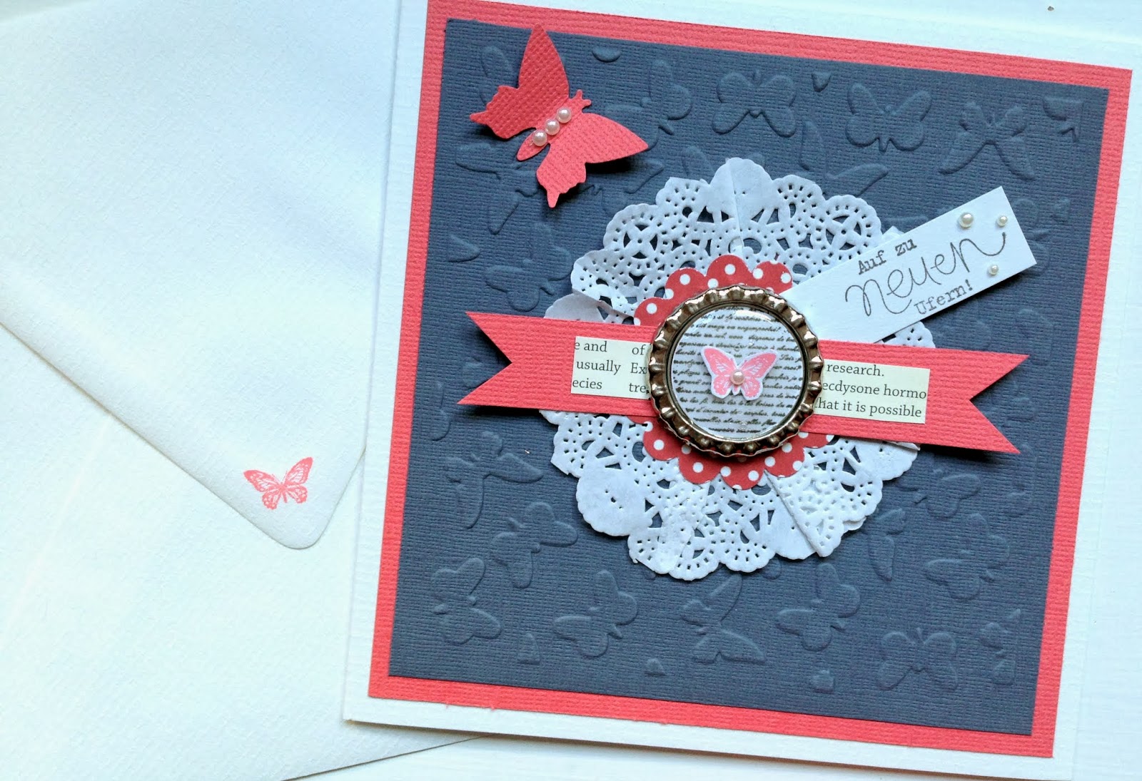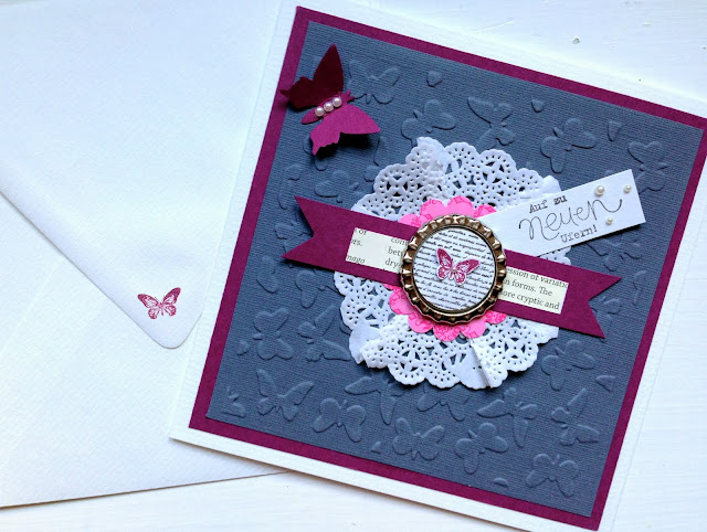 Als Auftrag erhielt ich einige Karten zum Abschied zu machen. Den Spruch "auf zu neuen Ufern" fand ich passend, denn es ist für eine berufliche Neuorientierung...