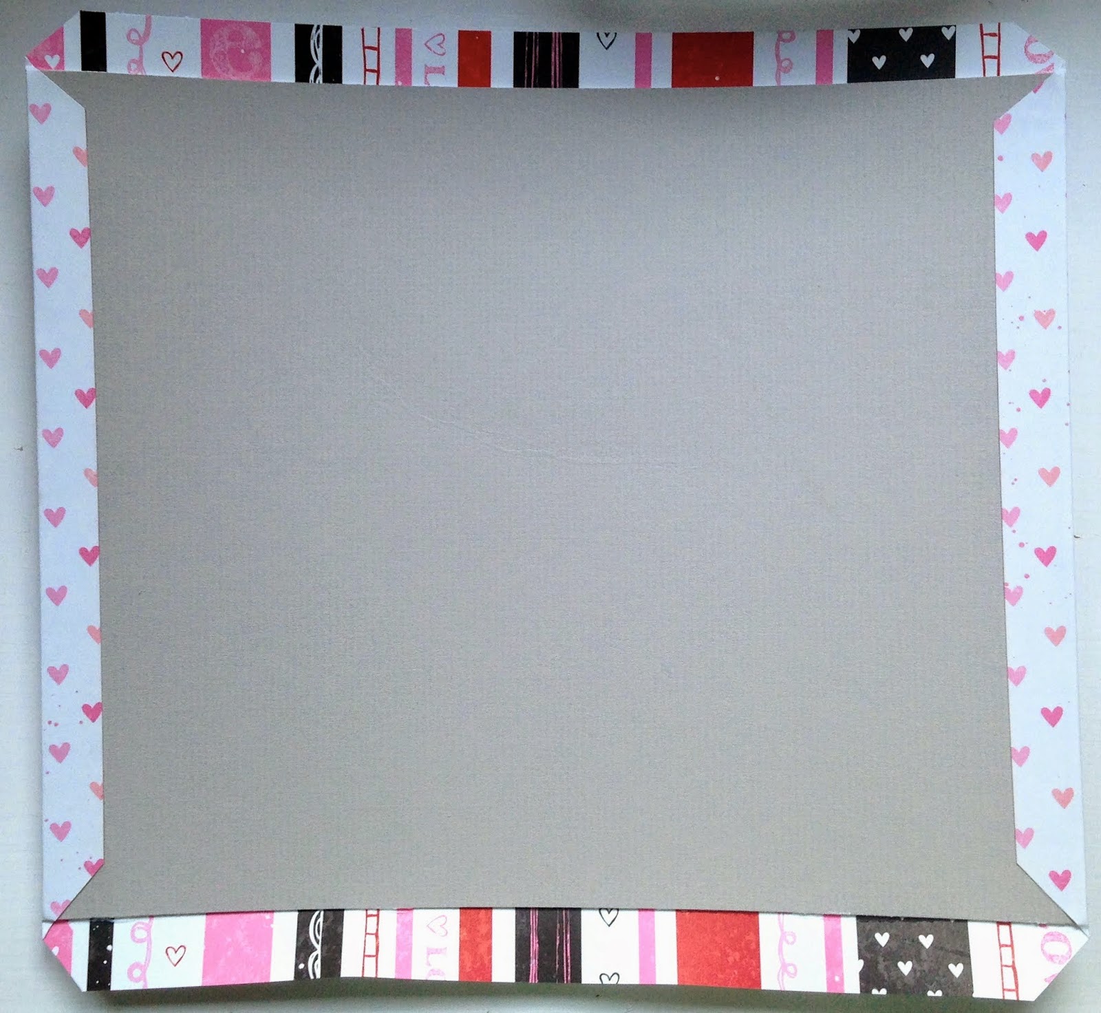 Als erstes braucht ihr Graukarton (ich hatte hier gerade die Grösse 25x22cm vorrätig) und klebt diesen auf euer Motivpapier, die Ecken schneidet ihr schräg ab, lasst aber etwas Überstand.