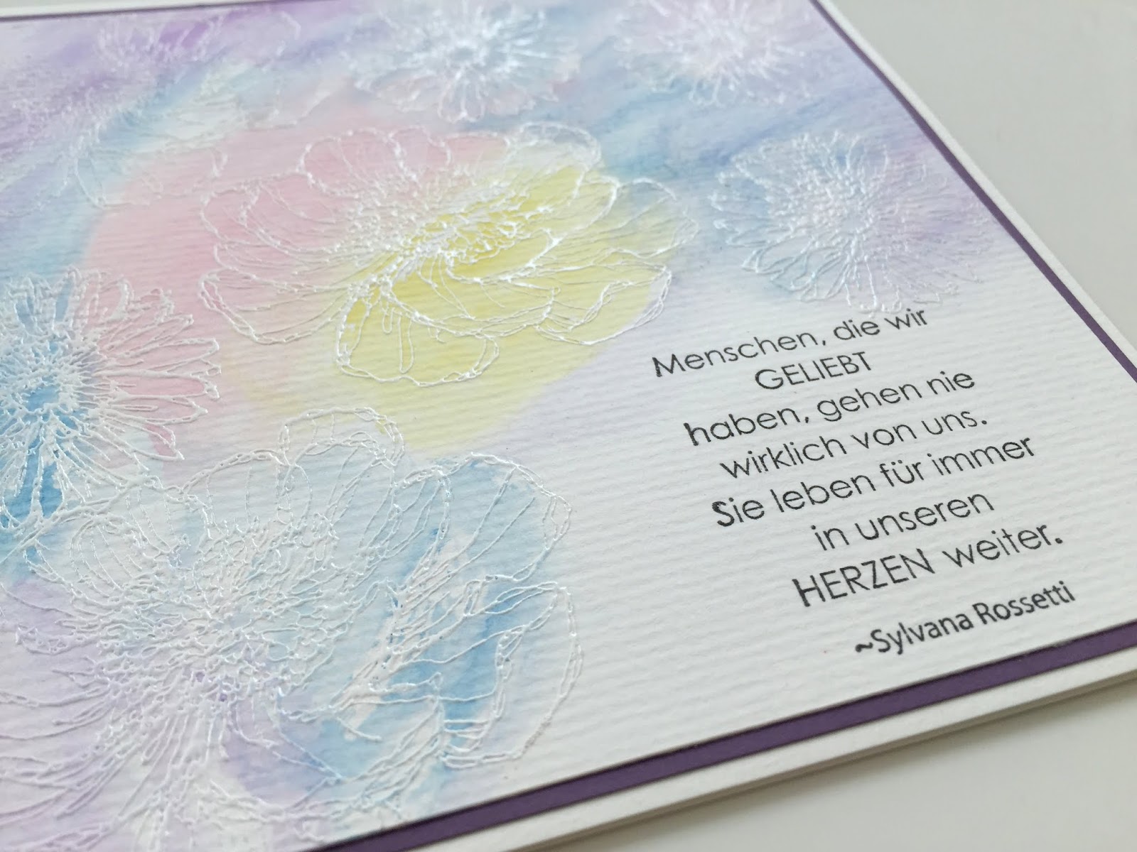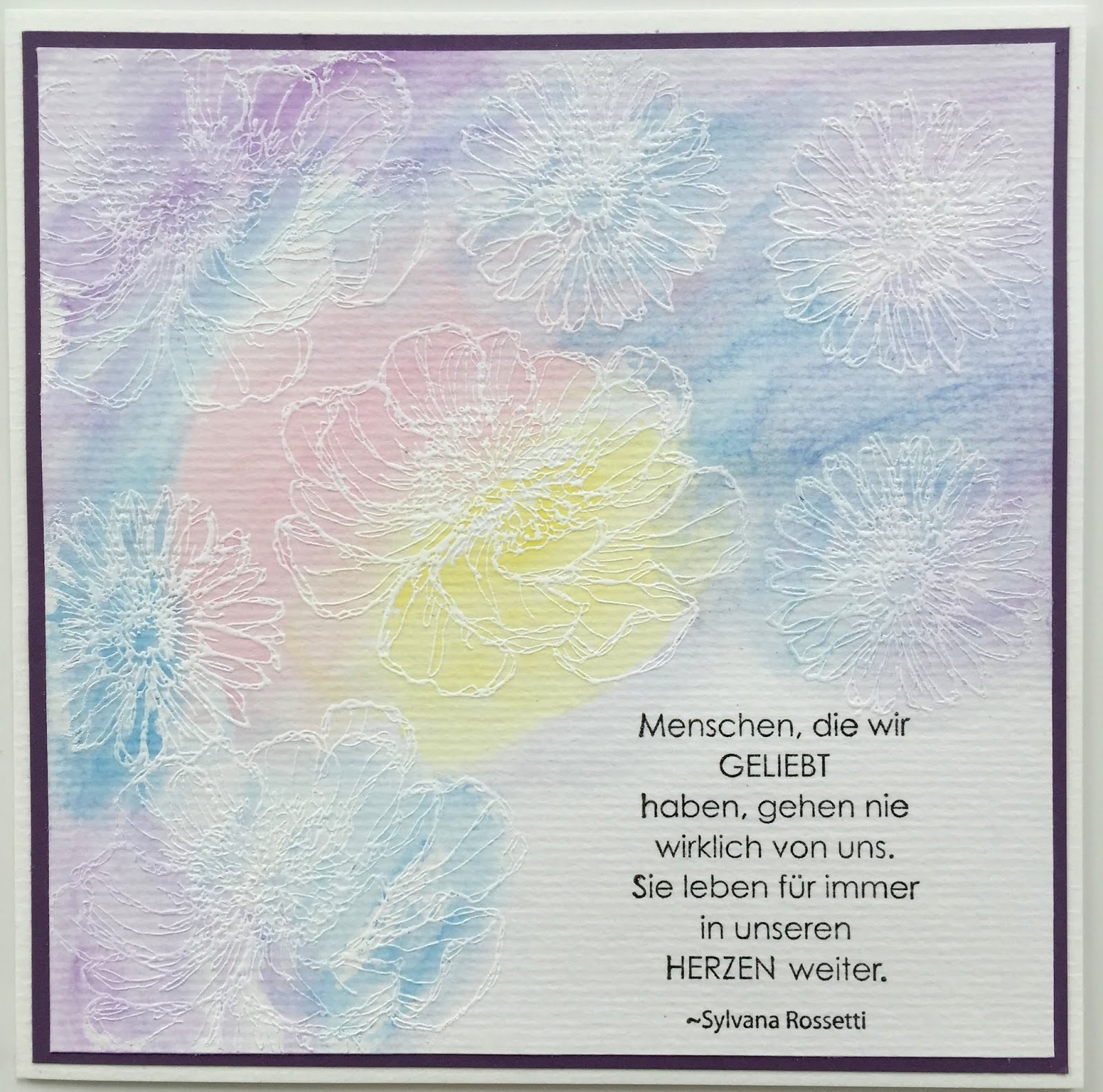 wieder habe ich eine andere Technik ausprobiert und die Karten gefallen mir sehr gut mit dieser Aquarelltechnik und Embossing!