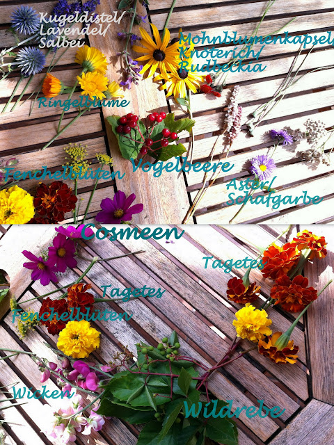 und natürlich die Blumen welche jetzt im Garten blühen, sind einfach zauberhaft! Ich habe mich von der Farbenpracht der Natur inspirieren lassen und von allem was blüht ein paar Blüten abgeschnitten!
